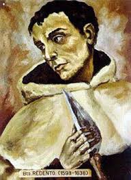 Chamava-se Tomás Rodrigues da Cunha e nasceu em Paredes de Coura, em 1598, no seio de uma família nobre. Com 19 anos embarcou para a Índia e notabilizou-se como capitão da praça de Meliapor. Mas optou por outro caminho: o da ordem carmelita onde recebeu o nome de Redento da Cruz. Nos finais de Outubro de 1638, foi enviado com o Padre Dionísio da Natividade a Achem, na Samatra, onde foi denunciado como espião e posto a ferros. Os mouros decidiram negociar a libertação dos cativos, mediante a sua conversão ao Islã. Perante a recusa de abjurarem da sua fé, foram condenados a atrozes suplícios e à morte a golpes de azagaia.